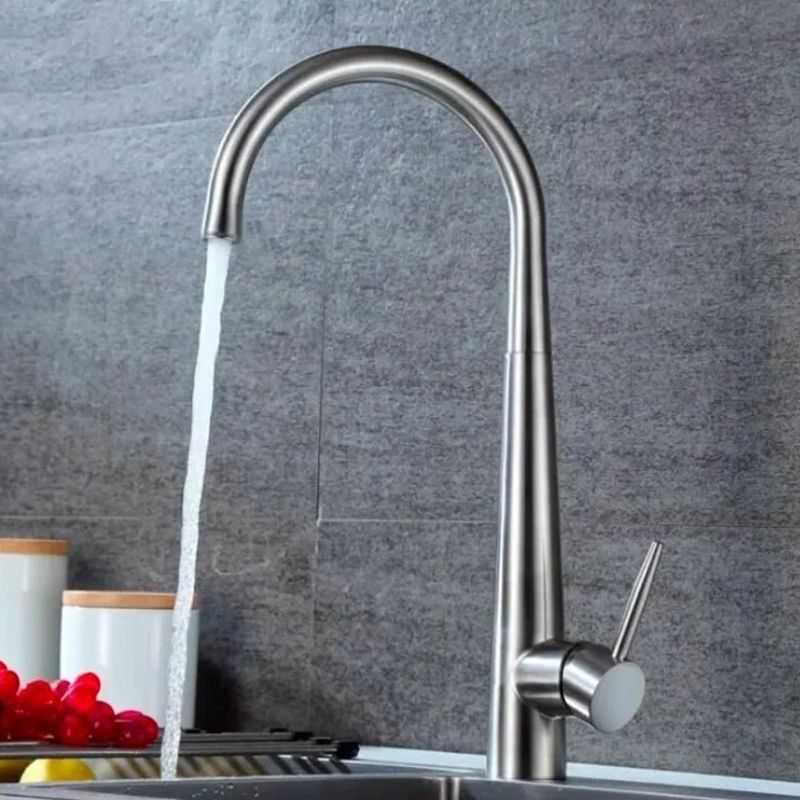 Смеситель для кухни FASHUN A54014, сатин. Управление: рычажное. Вращение излива: да. Выдвижной излив: нет. Гибкий излив: нет. Высота: 39,5 см.