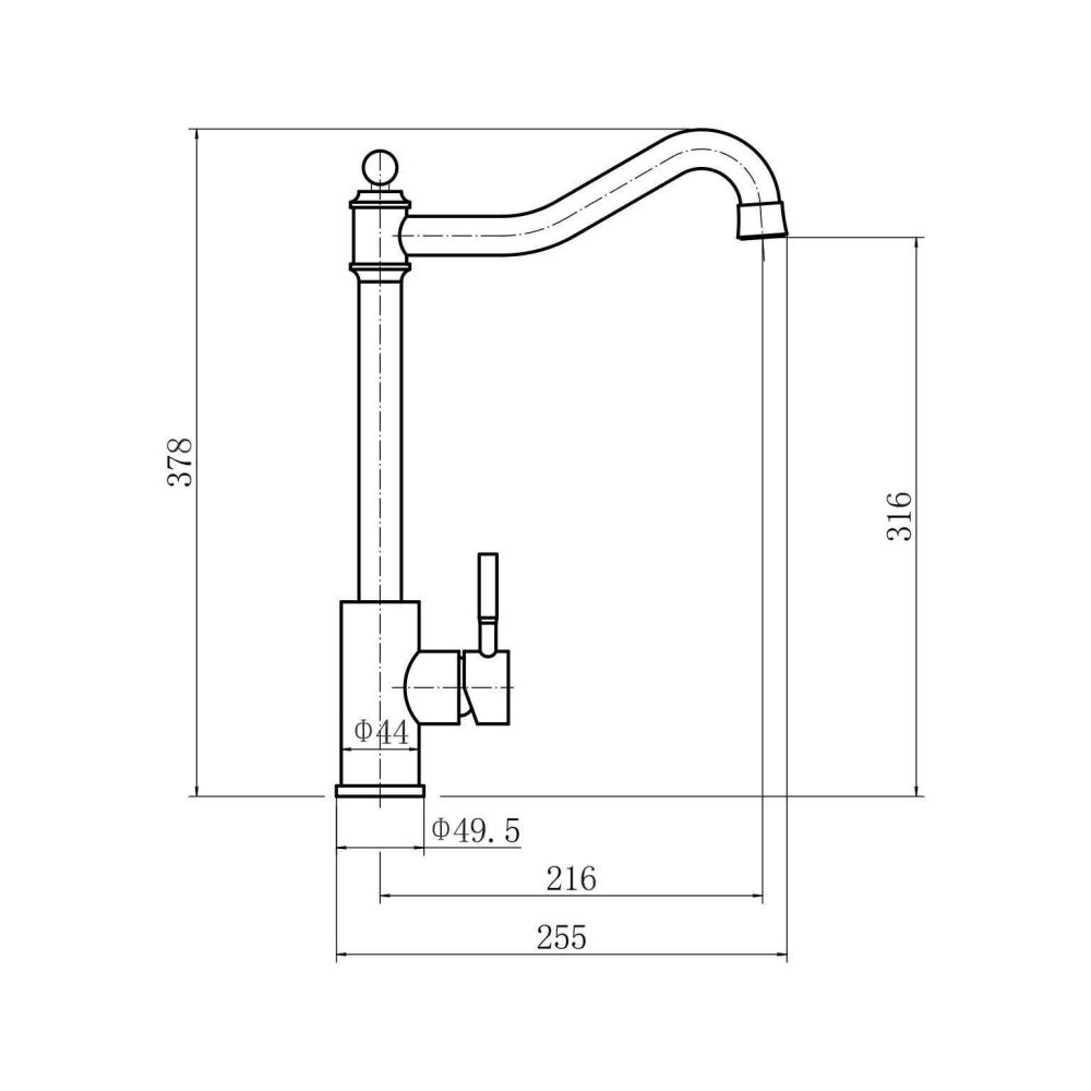 Смеситель для кухни FASHUN A54709, сатин. Управление: рычажное. Вращение излива: да. Выдвижной излив: нет. Гибкий излив: нет. Высота: 37,8 см.