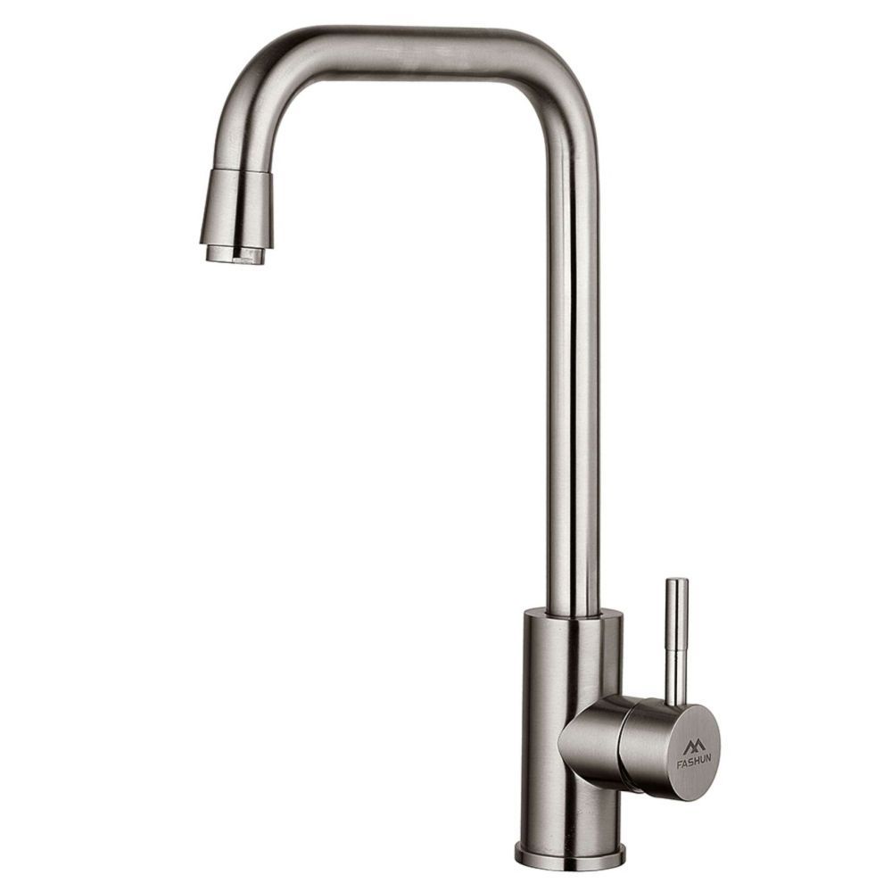 Смеситель для кухни FASHUN A54909-A, сатин. Управление: рычажное. Вращение излива: да. Выдвижной излив: нет. Гибкий излив: нет. Высота: 37,2 см.