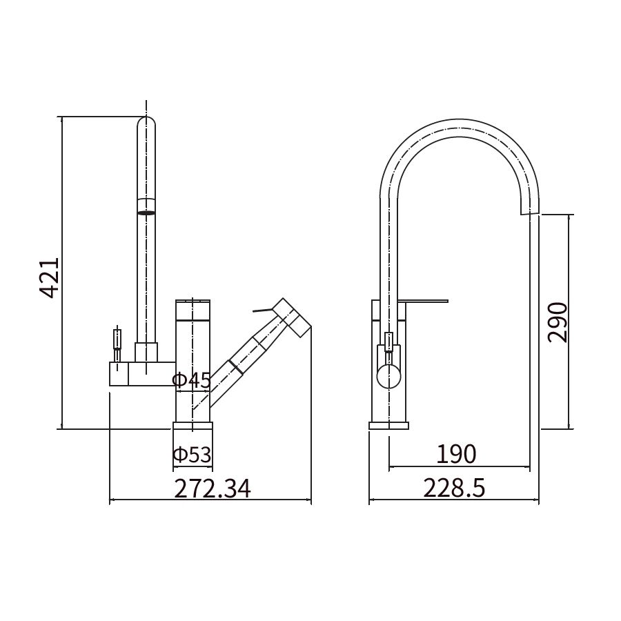 Смеситель для кухни FASHUN A56005, сатин. Управление: рычажное. Вращение излива: да. Выдвижной излив: да. Гибкий излив: нет. Высота: 42,1 см.