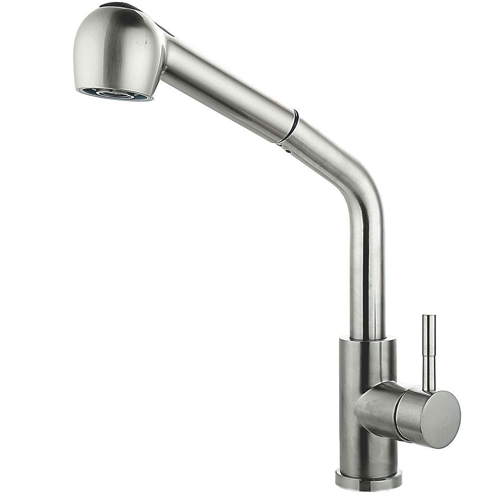 Смеситель для кухни FASHUN A56009, сатин. Управление: рычажное. Вращение излива: да. Выдвижной излив: да. Гибкий излив: нет. Высота: 36,3 см.