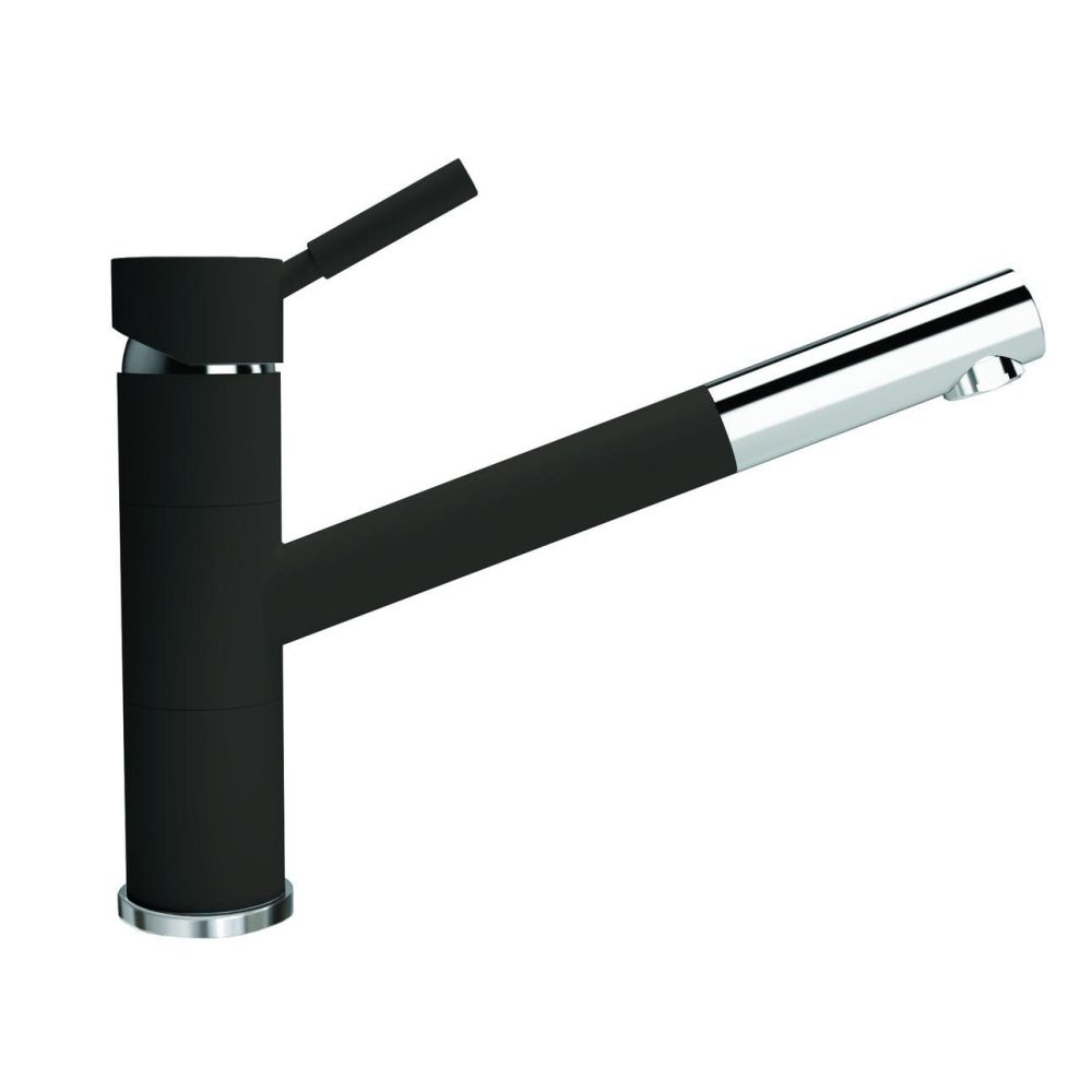 Смеситель однорычажный с низким изливом. Материал - латунь. Поворотный излив. Керамический картридж 35 мм. Гибкая подводка.