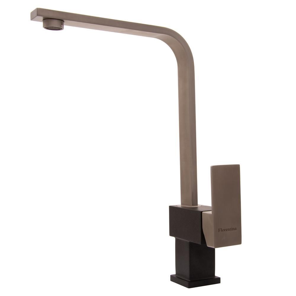 Смеситель однорычажный с высоким изливом. Материал - нержавеющая сталь. Поворотный излив. Керамический картридж 35мм. Гибкая подводка.