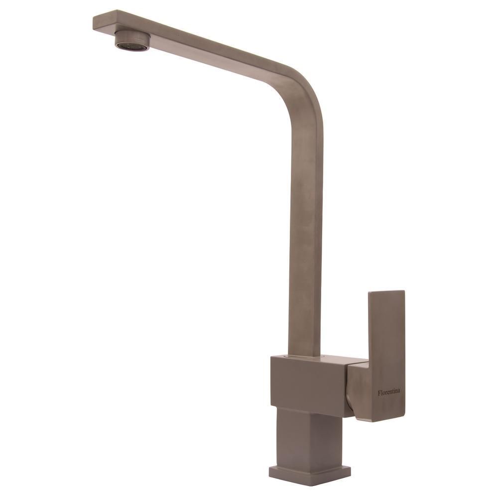 Смеситель однорычажный с высоким изливом. Материал - нержавеющая сталь. Поворотный излив. Керамический картридж 35мм. Гибкая подводка.