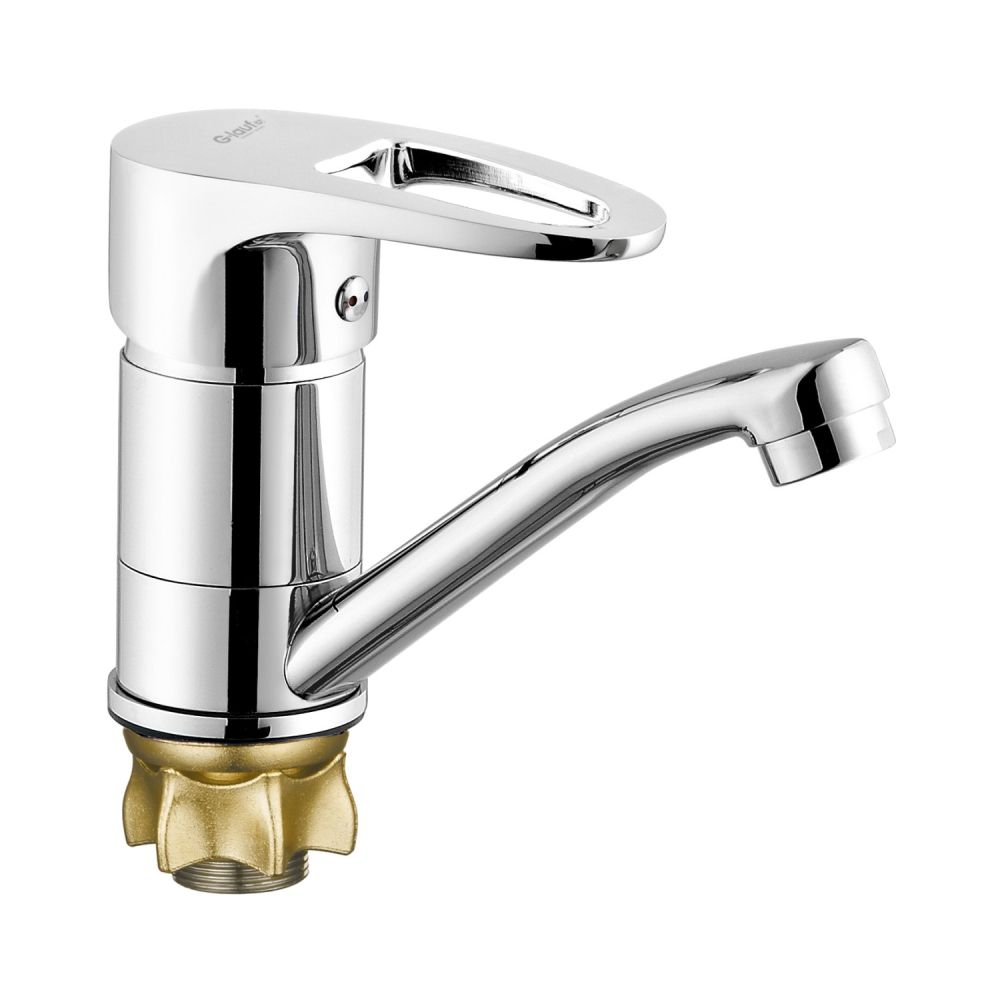 Смеситель для кухни G.Lauf 4T4-B180. Цвет: хром. Поверхность: глянцевая. Материал: латунь. Гарантийный срок: 3 года. Стилистика дизайна современный стиль. Монтаж: на мойку;на столешницу. Управление: рычажное. Вращение излива: да. Выдвижной излив: нет. Гибкий излиа: нет. Режим душ излива: нет. Стандарт подводки: 1/2".
