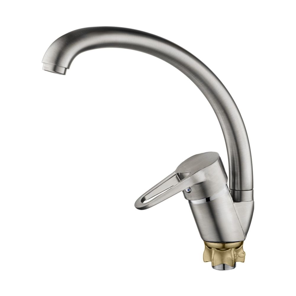 Смеситель для кухни G.Lauf NUD4-A045KH. Цвет: сатин. Поверхность: матовая. Материал: латунь. Гарантийный срок: 3 года. Стилистика дизайна современный стиль. Монтаж: на мойку;на столешницу. Управление: рычажное. Вращение излива: да. Выдвижной излив: нет. Гибкий излиа: нет. Режим душ излива: нет. Стандарт подводки: 1/2".