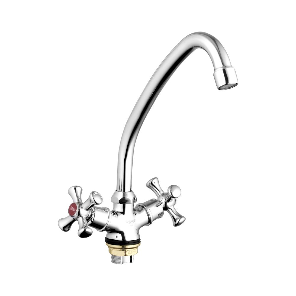 Смеситель для кухни G.Lauf QFR4-A827. Цвет: хром. Поверхность: глянцевая. Материал: латунь. Гарантийный срок: 3 года. Стилистика дизайна ретро. Монтаж: на мойку;на столешницу. Управление: вентильное. Вращение излива: да. Выдвижной излив: нет. Гибкий излиа: нет. Режим душ излива: нет. Стандарт подводки: 1/2".