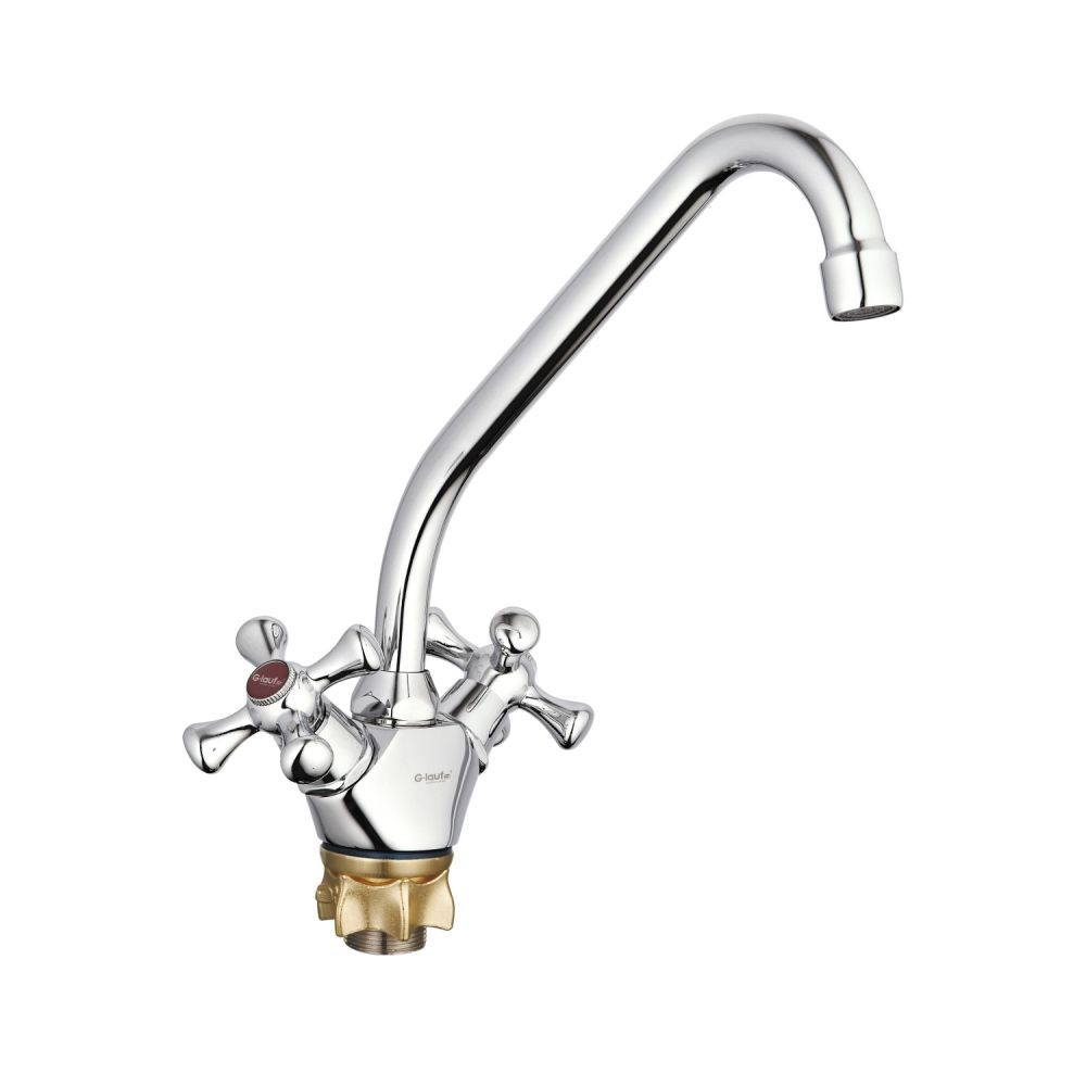 Смеситель для кухни G.Lauf QSL4-A827. Цвет: хром. Поверхность: глянцевая. Материал: латунь. Гарантийный срок: 5 лет. Стилистика дизайна ретро. Монтаж: на мойку;на столешницу. Управление: вентильное. Вращение излива: да. Выдвижной излив: нет. Гибкий излиа: нет. Режим душ излива: нет. Стандарт подводки: 1/2".