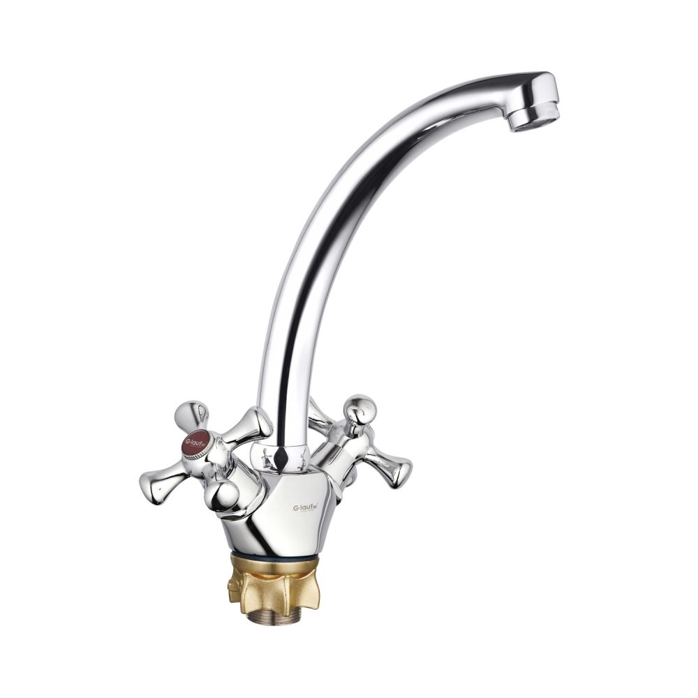 Смеситель для кухни G.Lauf QSL4-B827. Цвет: хром. Поверхность: глянцевая. Материал: латунь. Гарантийный срок: 5 лет. Стилистика дизайна ретро. Монтаж: на мойку;на столешницу. Управление: вентильное. Вращение излива: да. Выдвижной излив: нет. Гибкий излиа: нет. Режим душ излива: нет. Стандарт подводки: 1/2".