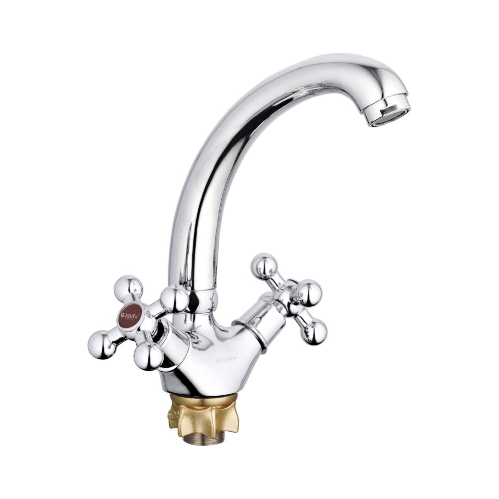 Смеситель для кухни G.Lauf QTZ4-C856. Цвет: хром. Поверхность: глянцевая. Материал: латунь. Гарантийный срок: 3 года. Стилистика дизайна ретро. Монтаж: на мойку;на столешницу. Управление: вентильное. Вращение излива: да. Выдвижной излив: нет. Гибкий излиа: нет. Режим душ излива: нет. Стандарт подводки: 1/2".