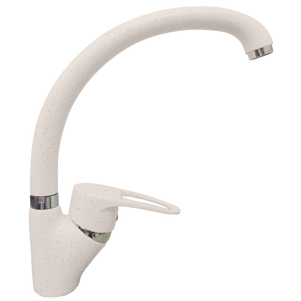 Смеситель для кухни GranFest 1024, белый. Материал: латунь. Управление: рычажное. Подключение фильтра для воды: нет. Гибкая подводка. Отверстия для монтажа: 1.