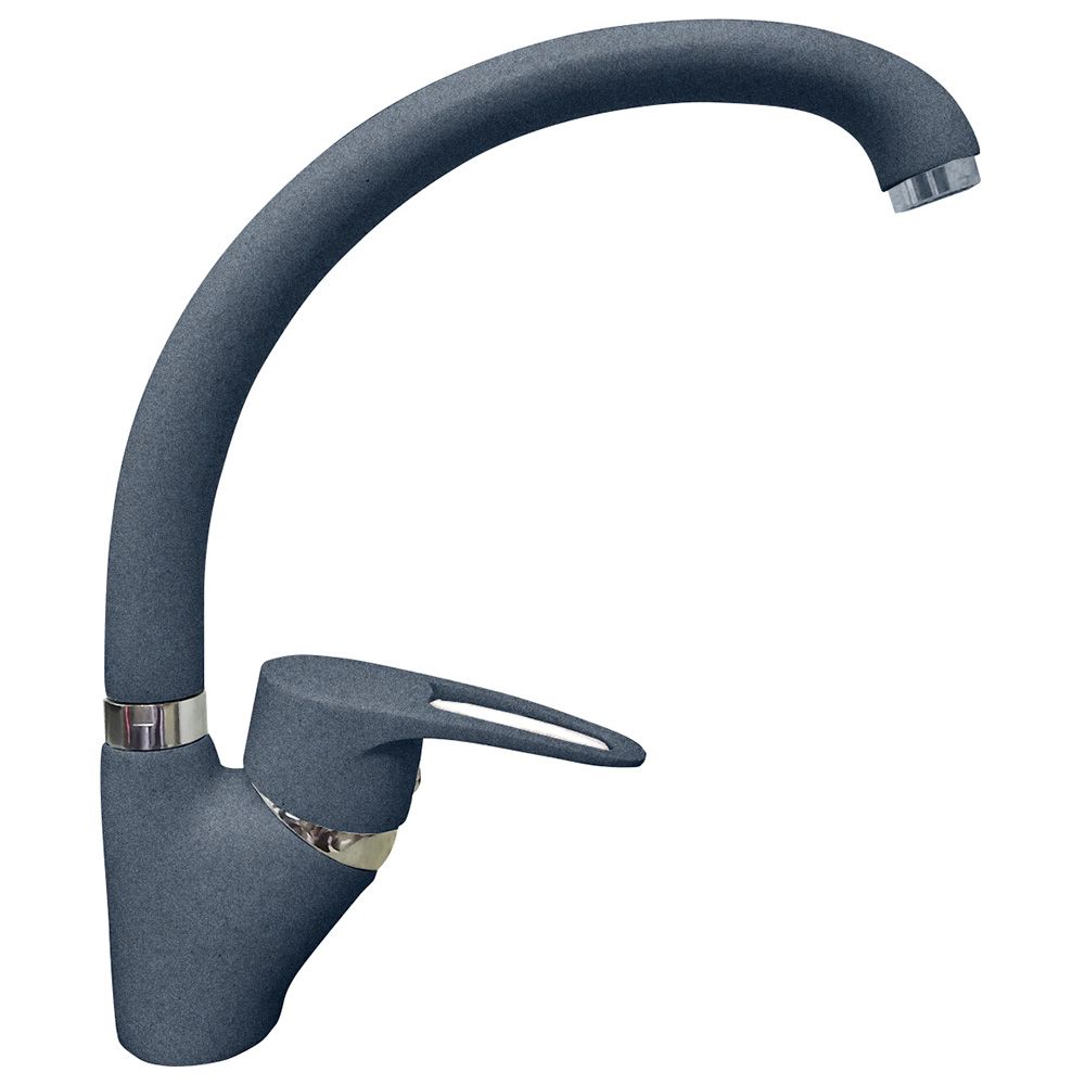 Смеситель для кухни GranFest 1024, графит. Материал: латунь. Управление: рычажное. Подключение фильтра для воды: нет. Гибкая подводка. Отверстия для монтажа: 1.