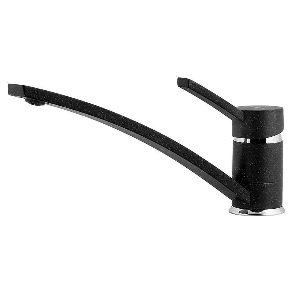 Смеситель для кухни GranFest 1724, черный. Материал: латунь. Управление: рычажное. Подключение фильтра для воды: нет. Гибкая подводка. Отверстия для монтажа: 1.