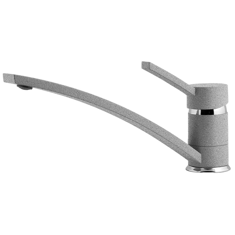 Смеситель для кухни GranFest 1724, серый металлик. Материал: латунь. Управление: рычажное. Подключение фильтра для воды: нет. Гибкая подводка. Отверстия для монтажа: 1.