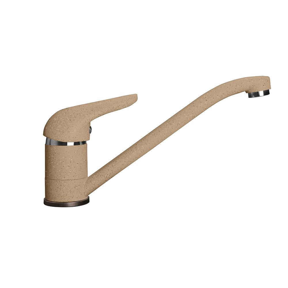 Смеситель для кухни GranFest 2124, песочный. Материал: латунь. Управление: рычажное. Подключение фильтра для воды: нет. Гибкая подводка. Отверстия для монтажа: 1.