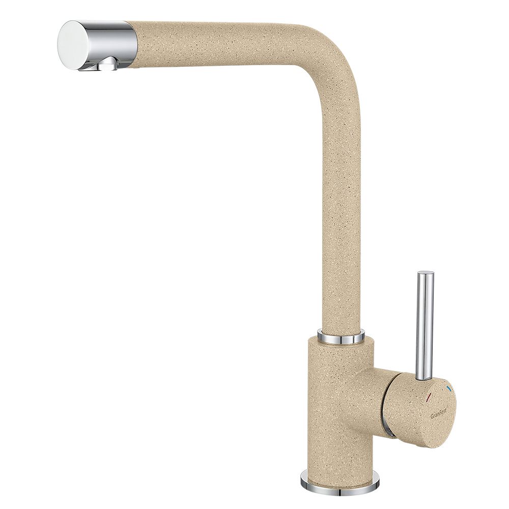 Смеситель для кухни GranFest 3651, бежевый. Материал: нержавеющая сталь. Управление: рычажное. Подключение фильтра для воды: нет. Гибкая подводка. Отверстия для монтажа: 1.