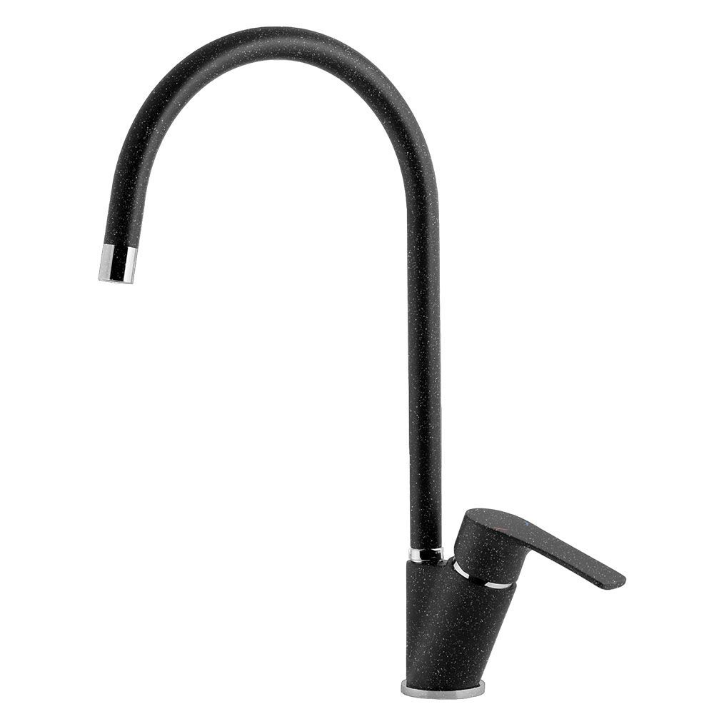 Смеситель для кухни GranFest 5023, черный. Материал: латунь. Управление: рычажное. Подключение фильтра для воды: нет. Гибкая подводка. Отверстия для монтажа: 1.