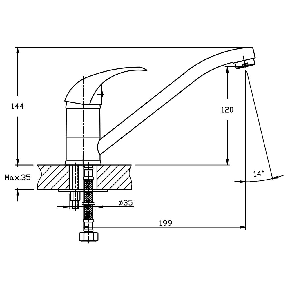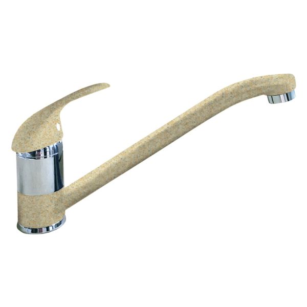 Смеситель для кухни GranFest Z-3321, бежевый. Материал: латунь. Управление: рычажное. Подключение фильтра для воды: нет. Гибкая подводка. Отверстия для монтажа: 1.