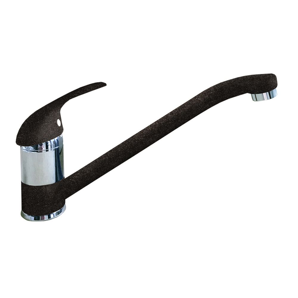 Смеситель для кухни GranFest Z-3321, черный. Материал: латунь. Управление: рычажное. Подключение фильтра для воды: нет. Гибкая подводка. Отверстия для монтажа: 1.
