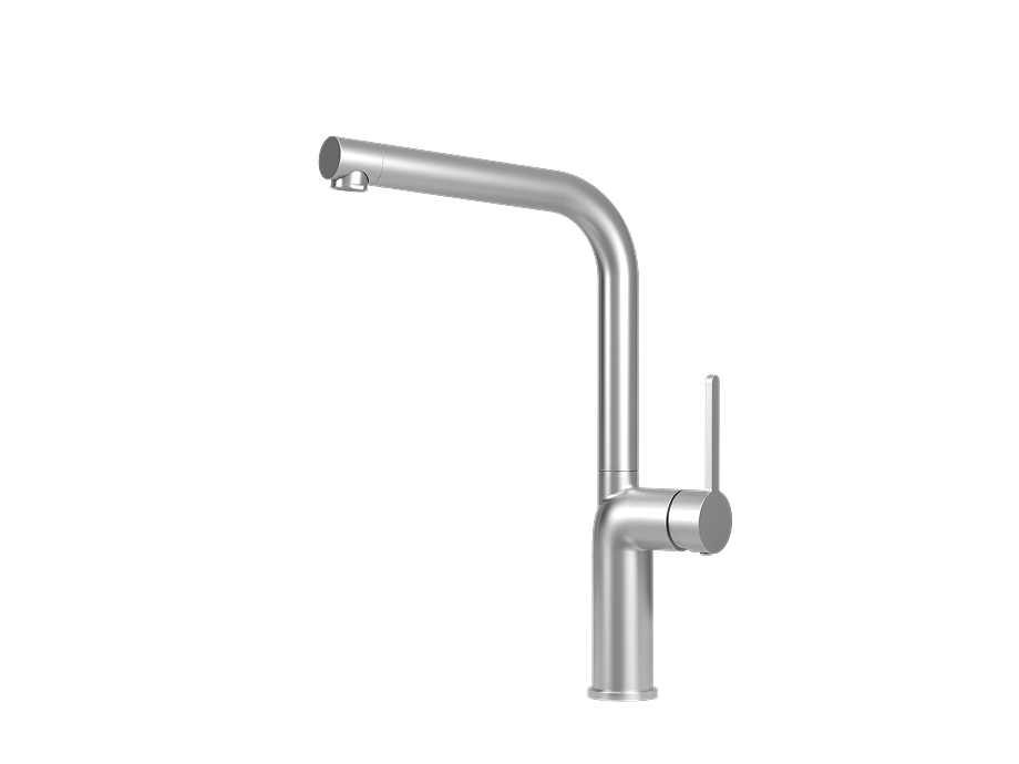 Стильный и изящный смеситель, выполненный из высококачественной нержавеющей стали, станет элегантным дополнением Вашей кухни. Он оснащен керамическим картриджем (35 мм) для плавного и точного управления потоком воды. Удобный ограничитель хода ручки позволяет установить его даже в условиях ограниченного пространства. Подходит для столешниц толщиной до 60 мм. Надежный монтаж гарантирует долговечность.<br>