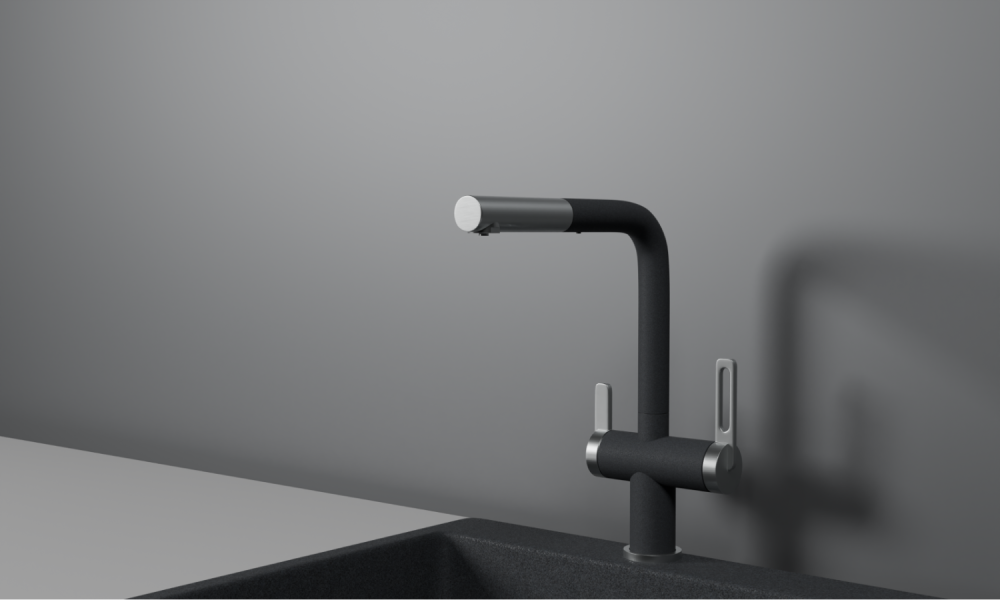 Смеситель для кухни с выдвижным изливом и подключением к фильтру от российского бренда Granula._x005F