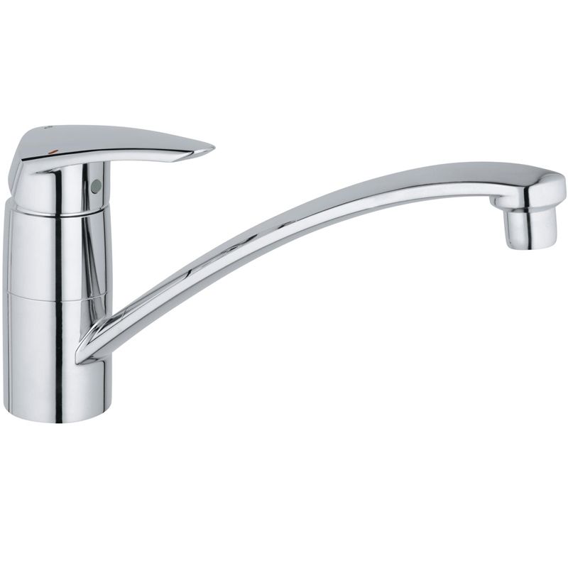 Этот кухонный смеситель из серии GROHE Eurodisc представляет собой великолепный выбор для оснащения Вашей кухни. Хромированное покрытие GROHE StarLight придает ему эффектный зеркальный блеск, а также неприхотливость в уходе. Тонкий излив плоской формы может вращаться в радиусе 140°, расширяя охват рабочего пространства. Картридж с технологией GROHE SilkMove обеспечивает плавность и легкость регулировки температуры и напора воды, а система упрощенного монтажа позволит установить и подготовить к работе этот однорычажный смеситель практически мгновенно.