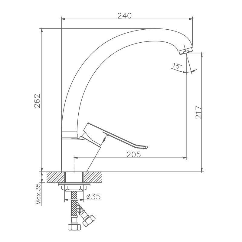 Смеситель для кухни бренда Haiba. Изготовлен из латуни. Картридж 35 мм. Укомплектован аэратором. Гибкая подводка 45 см. С поворотным изливом.