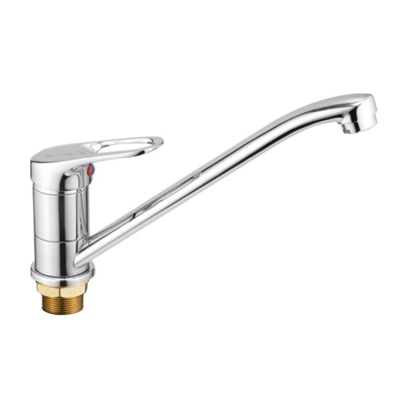 Смеситель для кухни бренда Haiba. Изготовлен из латуни. Картридж 35 мм. Укомплектован аэратором. Гибкая подводка 40 см. С поворотным изливом.