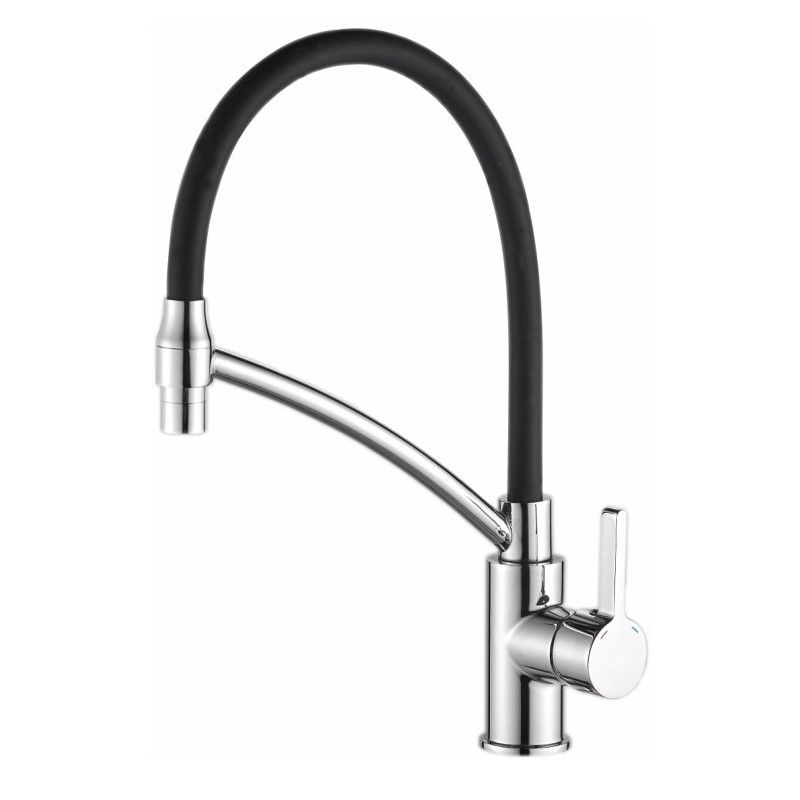 Смеситель для кухни бренда Haiba. Изготовлен из латуни. Картридж 35 мм. Укомплектован аэратором. Гибкая подводка 40 см. С поворотным изливом.