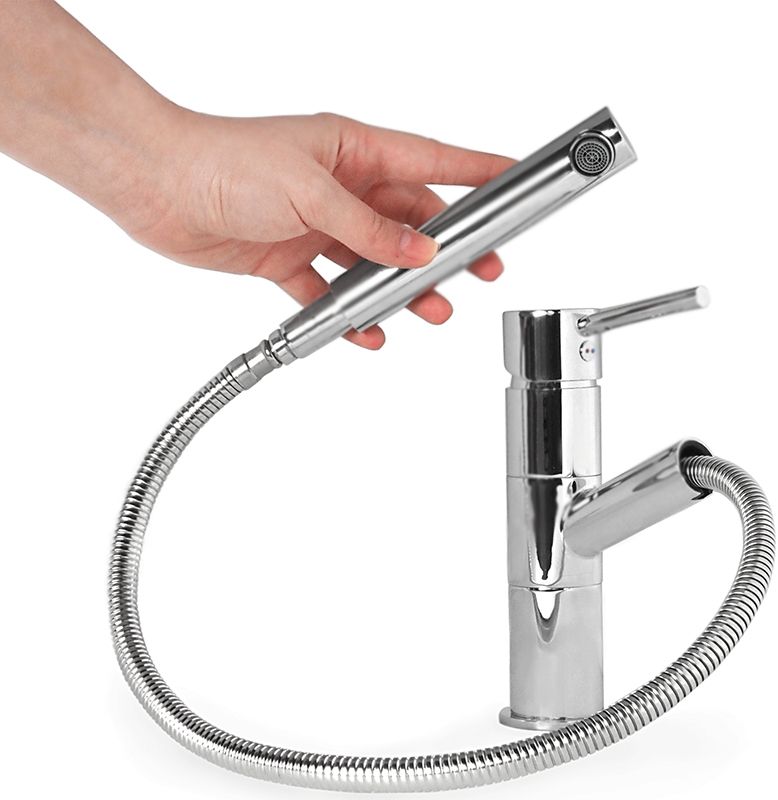 - Излив: выдвижной, поворотный, L 20,1 см. Высота смесителя: 17,8 см.
