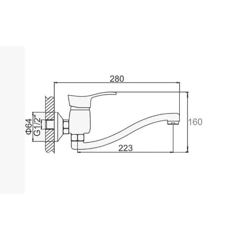 Смеситель для кухни настенный D-Lin D141305, хром. Управление: рычажное. Материал: латунь. Монтаж: настенный.