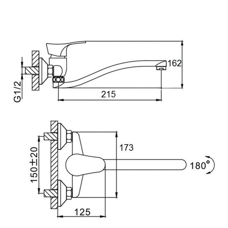 Смеситель для кухни настенный D-Lin D141405, хром. Управление: рычажное. Материал: латунь. Монтаж: настенный.