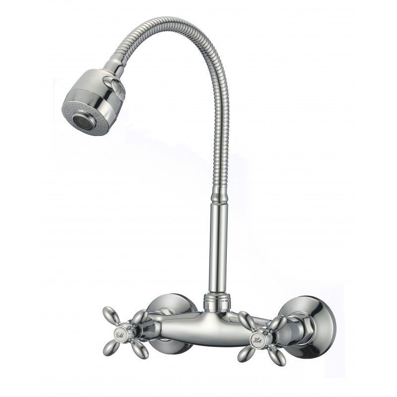 Смеситель для кухни настенный с гибким изливом D-Lin D142808-T, хром. Управление: вентильное. Материал: металлический сплав. Монтаж: настенный.