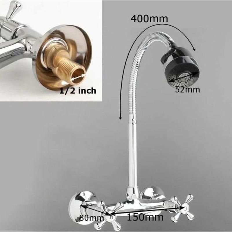 Смеситель для кухни настенный с гибким изливом D-Lin D142810-T, хром. Управление: вентильное. Материал: металлический сплав. Монтаж: настенный.