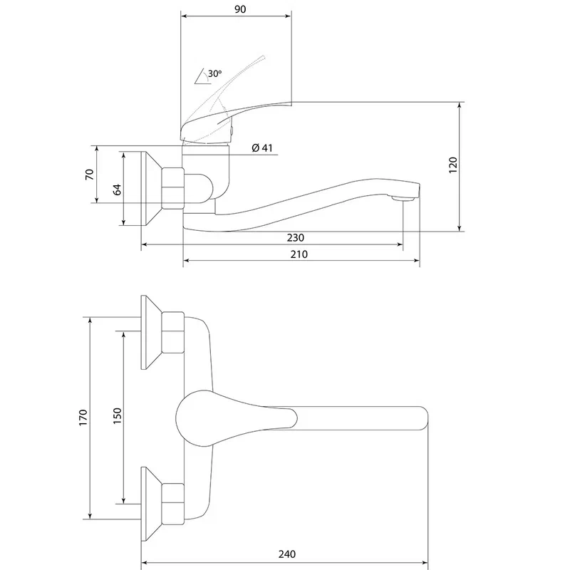 Современный настенный двухрычажный смеситель для кухни с длинным поворотным изливом от компании «СЛАВЕН» c собственной сборочной линией полного цикла в Подмосковье.