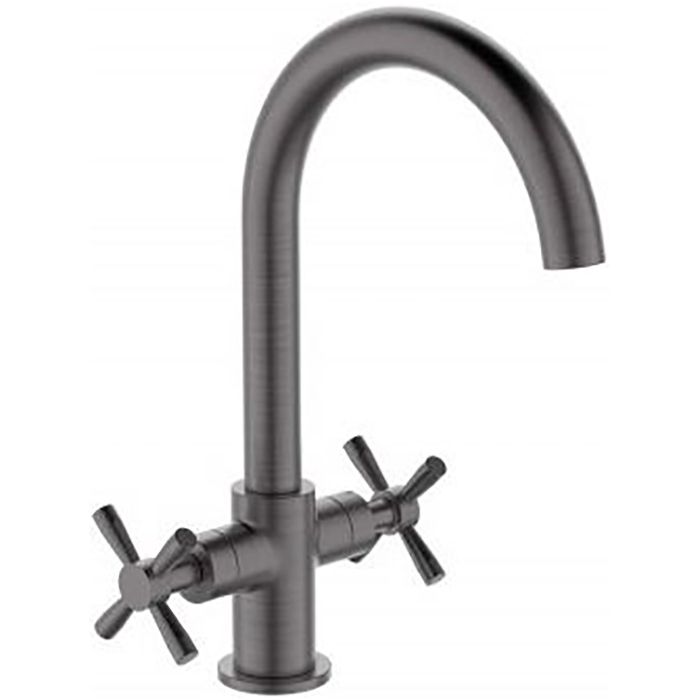 Смеситель с поворотным изливом в цвете графит, крепится на сантехнику, идеально подходит для любых кухонных комнат в современном стиле. Качественные материалы, которые используются для производства, устойчивы к коррозии и перепадам температур. Керамическая кран-букса позволит Вам плавно регулировать поток воды и температуру, это достаточно удобно в повседневном использовании.