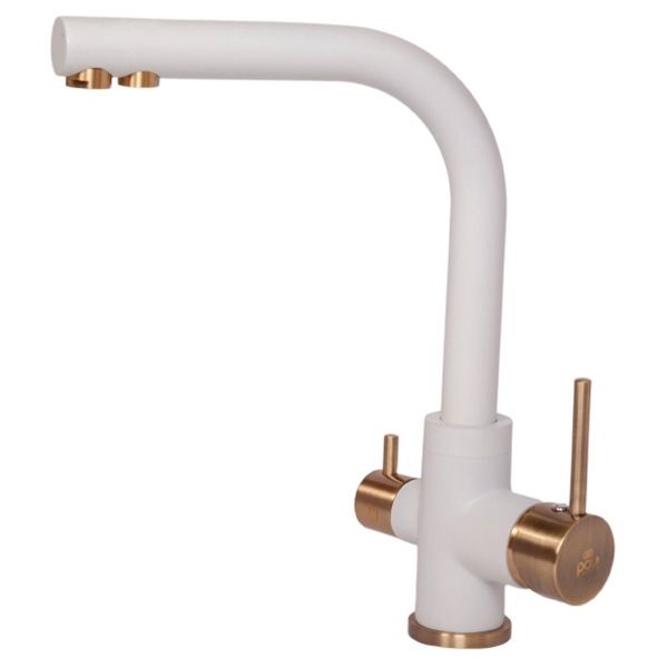 Однорычажный смеситель для кухонной мойки Paulmark Essen Es213011-431-BR. Цвет: белый матовый/бронза.