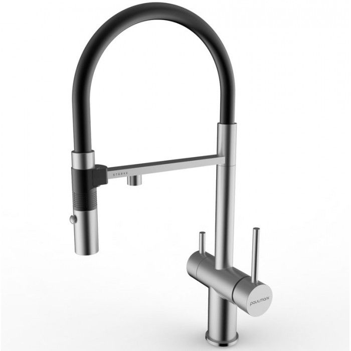 Смеситель для кухни Paulmark Magneto Ma213118-NI с поворотным изливом, с возможностью подключения фильтра питьевой воды. Латунь высокого качества.