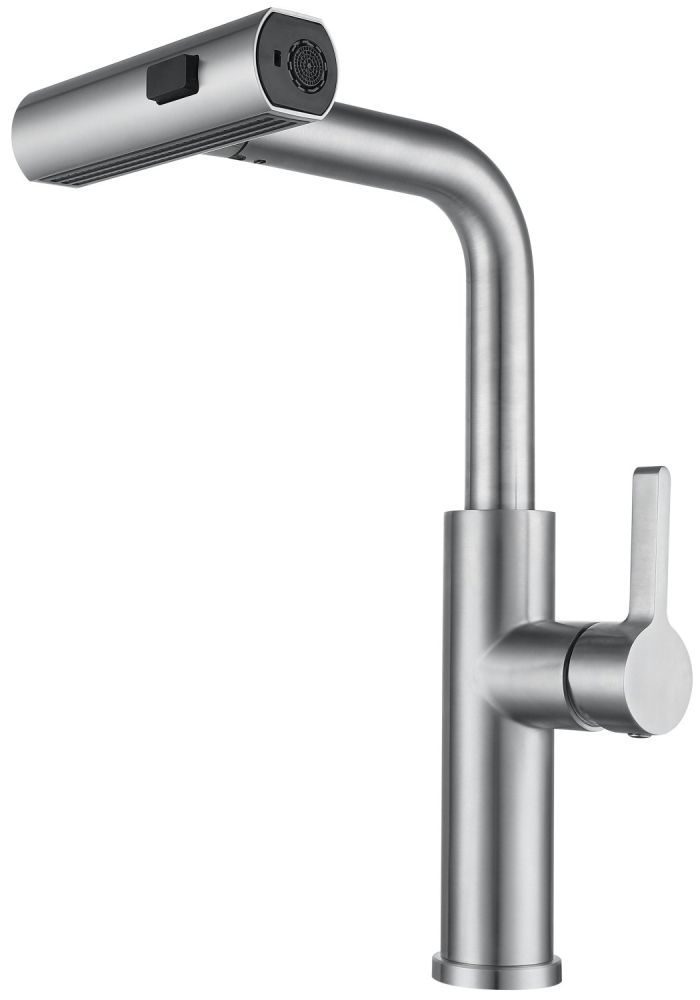 Многофункциональный смеситель для кухонной мойки ПСМ-300-96 серии STEEL произведен из высокопрочной нержавеющей стали марки AISI 304 (SUS 304). Вытяжная лейка с тремя режимами: 1. Аэрированный поток. 2.Распылитель под давлением работает при нажатии кнопки для быстрой очистки посуды от еды. 3.Широкий душевой поток включается поворотом лейки по часовой стрелке на 90°, используется для мытья овощей и фруктов. Благодаря шлангу лейка вытягивается до 50 см. Монтажная втулка длиной 70мм. позволяет устанавливать смеситель на столешницы толщиной до 55мм. Гибкая подводка для подключения к водопроводной систему 50 см. Смеситель восхищает своим удобством, лаконичным дизайном и становится незаменимым помощником на кухне.