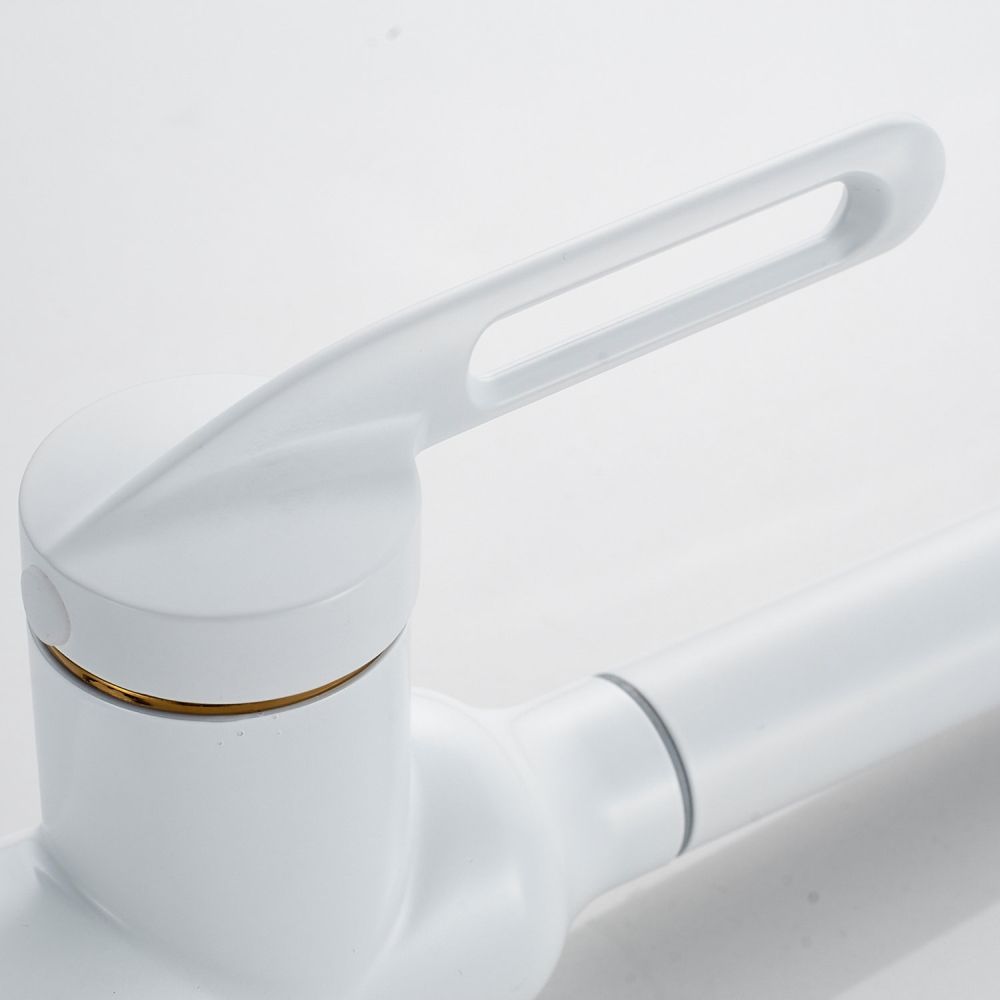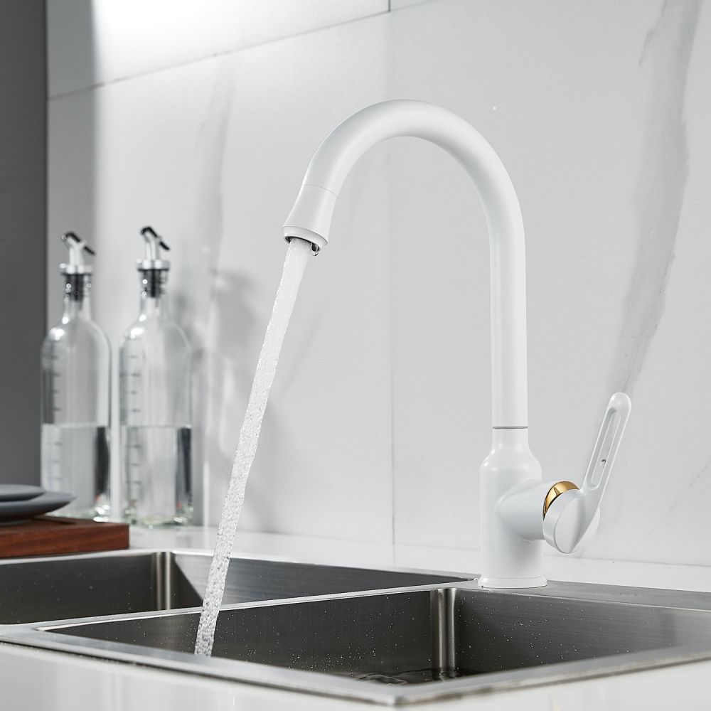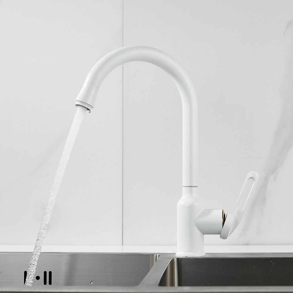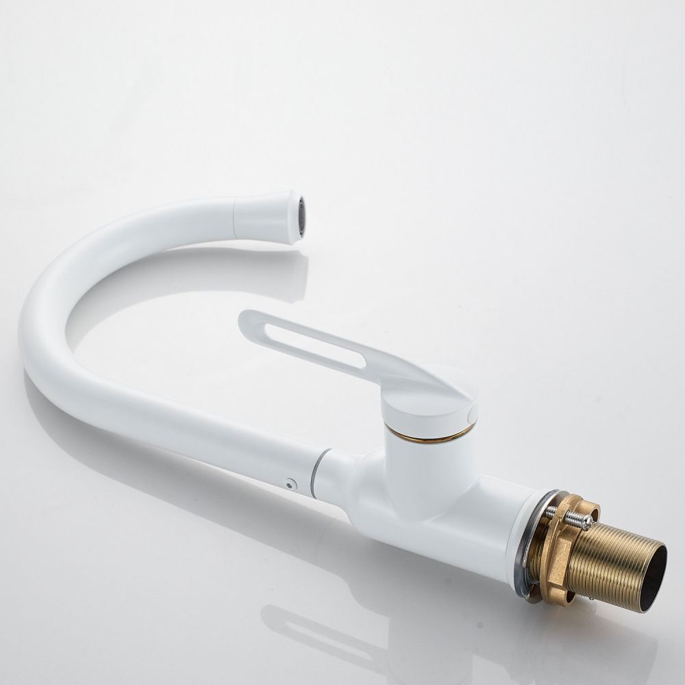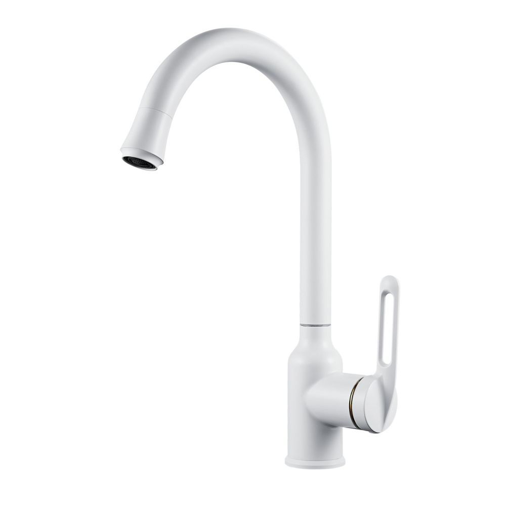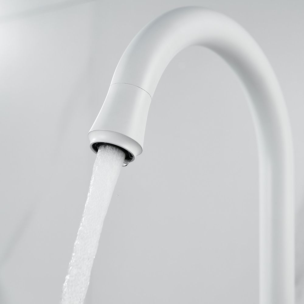Смеситель для кухни Raffine F103C в нежном белом матовом цвете — стильное и надёжное решение для вашей кухни. Изготовлен из высококачественной нержавеющей стали, что гарантирует его прочность и долговечность.
