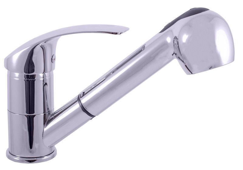 Rav Slezak Missisipi MS010.5 кухонный смеситель для раковины: высокий с поворотным изливом, однорычажный, вынимающийся душ с пружиной 2 м, душевая лейка с переключателем для душа, керамический катридж, гибкая подводка 1/2 длиной 35 см.