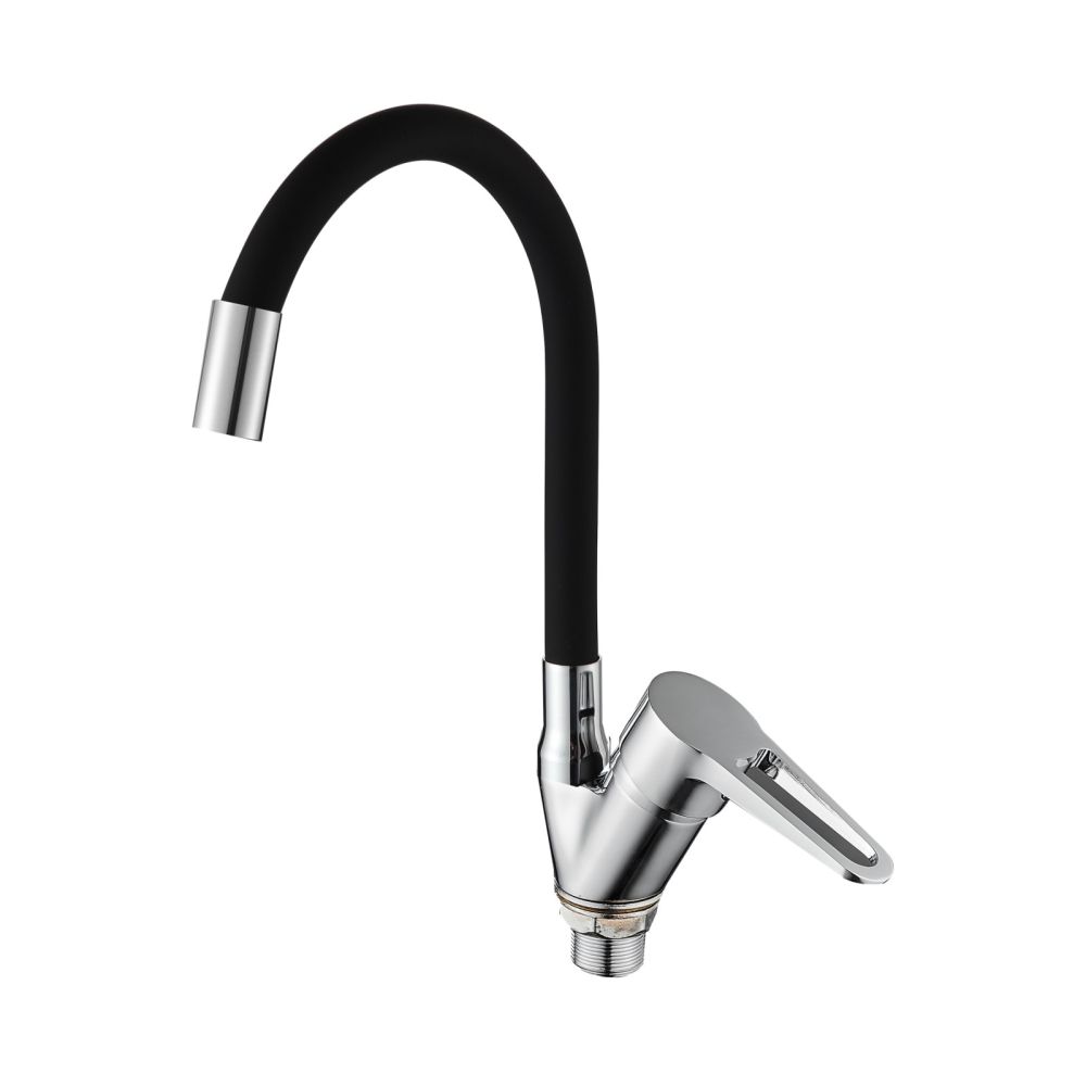 Гибкий силиконовый излив черного цвета с аэратором позволяет легко направлять поток воды в нужном направлении, а также обеспечивает равномерное распределение воды и её смягчение.
