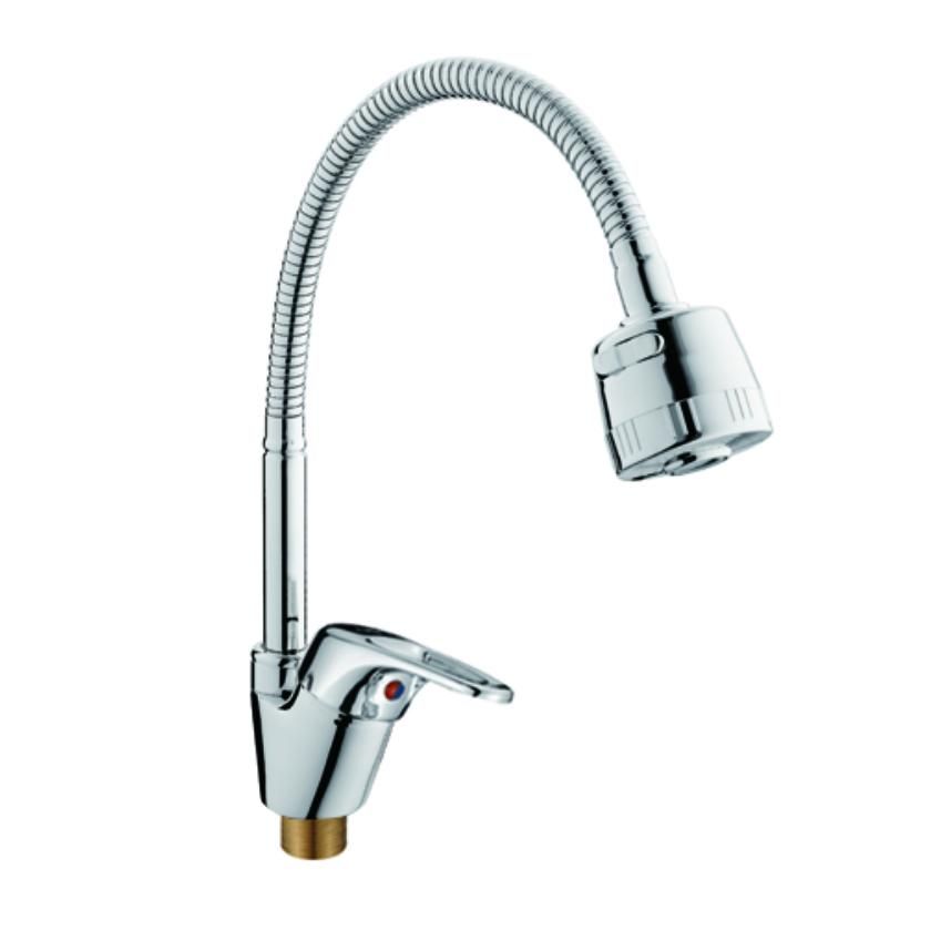 Смеситель для кухни с гибким изливом D-Lin D150359-T, хром. Управление: рычажное. Материал: латунь. Монтаж: на мойку.