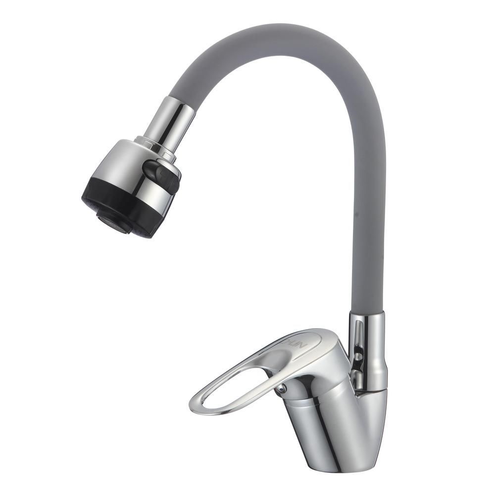 Смеситель для кухни с гибким изливом D-Lin D150628-2T, хром/серый. Управление: рычажное. Материал: металлический сплав. Монтаж: на мойку.