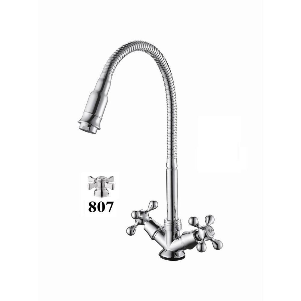 Смеситель для кухни с гибким изливом D-Lin D151807-Q, хром. Управление: вентильное. Материал: металлический сплав. Монтаж: на мойку.