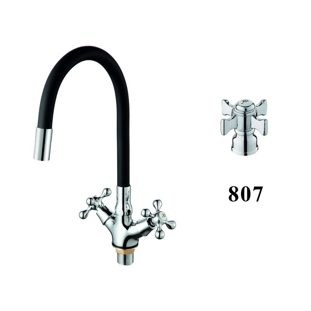 Смеситель для кухни с гибким изливом D-Lin D153807-1, хром/черный. Управление: вентильное. Материал: металлический сплав. Монтаж: на мойку.