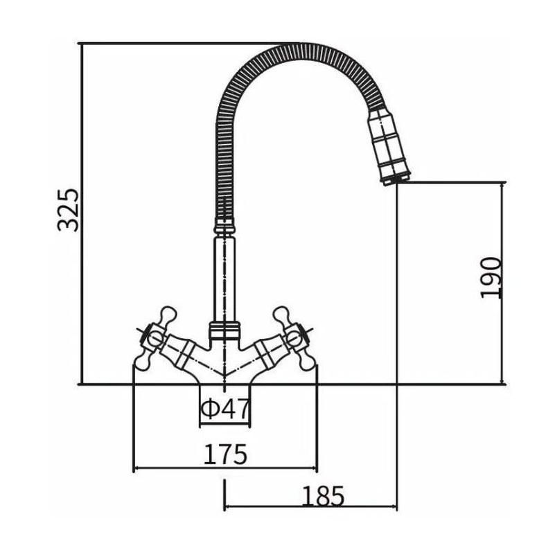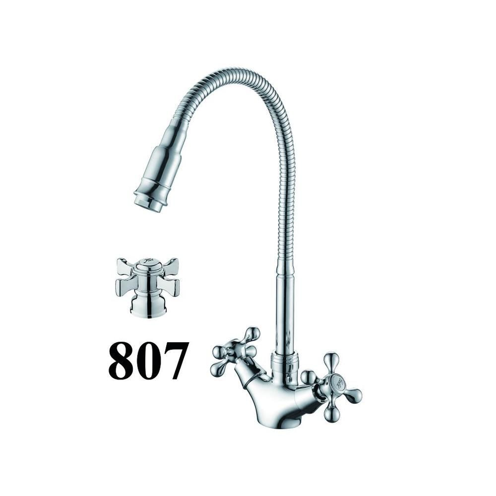 Смеситель для кухни с гибким изливом D-Lin D153807-Q, хром. Управление: вентильное. Материал: металлический сплав. Монтаж: на мойку.