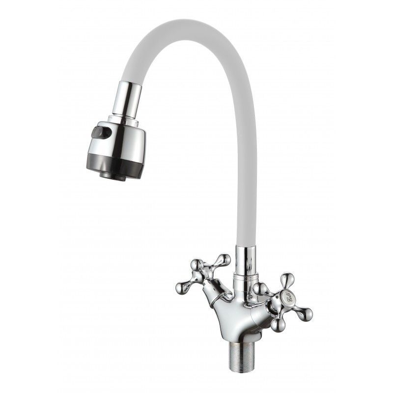 Смеситель для кухни с гибким изливом D-Lin D153810-3T, хром/белый. Управление: вентильное. Материал: металлический сплав. Монтаж: на мойку.