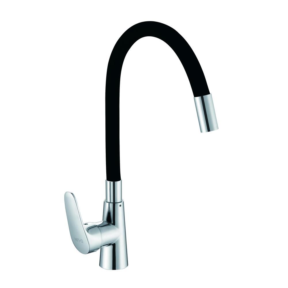 Смеситель для кухни с гибким изливом D-Lin D155302-1, хром/черный. Управление: рычажное. Материал: металлический сплав. Монтаж: на мойку.
