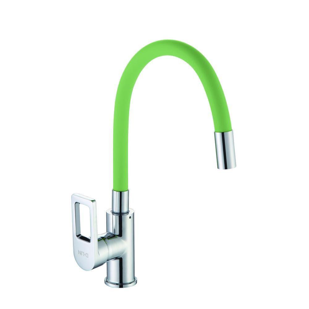 Смеситель для кухни с гибким изливом D-Lin D155308-5, хром/зеленый. Управление: рычажное. Материал: латунь. Монтаж: на мойку.